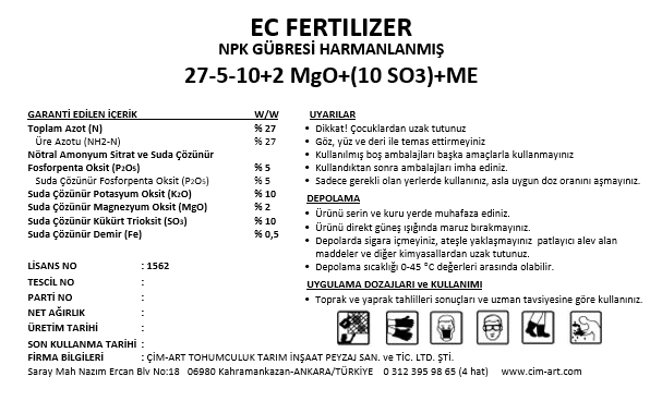 27-5-10 +(10 SO3) +2 MgO +%0,5 Fe